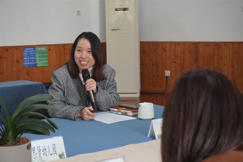 阳光明媚,微风不燥,随着轻快的音乐声响起,孩子们搬梯子、滚轮胎、系绳索,将运动器材自由组合,同时借助户外运动区里的大型设施和自然环境,自主营造舒适开阔、具有趣味性和挑战性的游戏场地。孩子们骑小车、打篮球、踢足球、跳皮筋……充分享受冬日的阳光、提高身体机能,在与器材、同伴、自然互动的过程中,获得健康、全面、有效的发展。游戏观摩过后,沈珍珍园长以《从传承走向创新——幼儿园市集课程的起始之路》为题进行汇报,从办园理念、发展目标,幼儿园课程的实践与思考等方面介绍了松幼市集课程形成的过程。倪敏老师观摩松幼的自主性游戏现场后肯定了幼儿园的游戏材料投放,赞赏了幼儿游戏的状态。同时对“幼儿市集课程”建构提出了专业性的指导意见。
